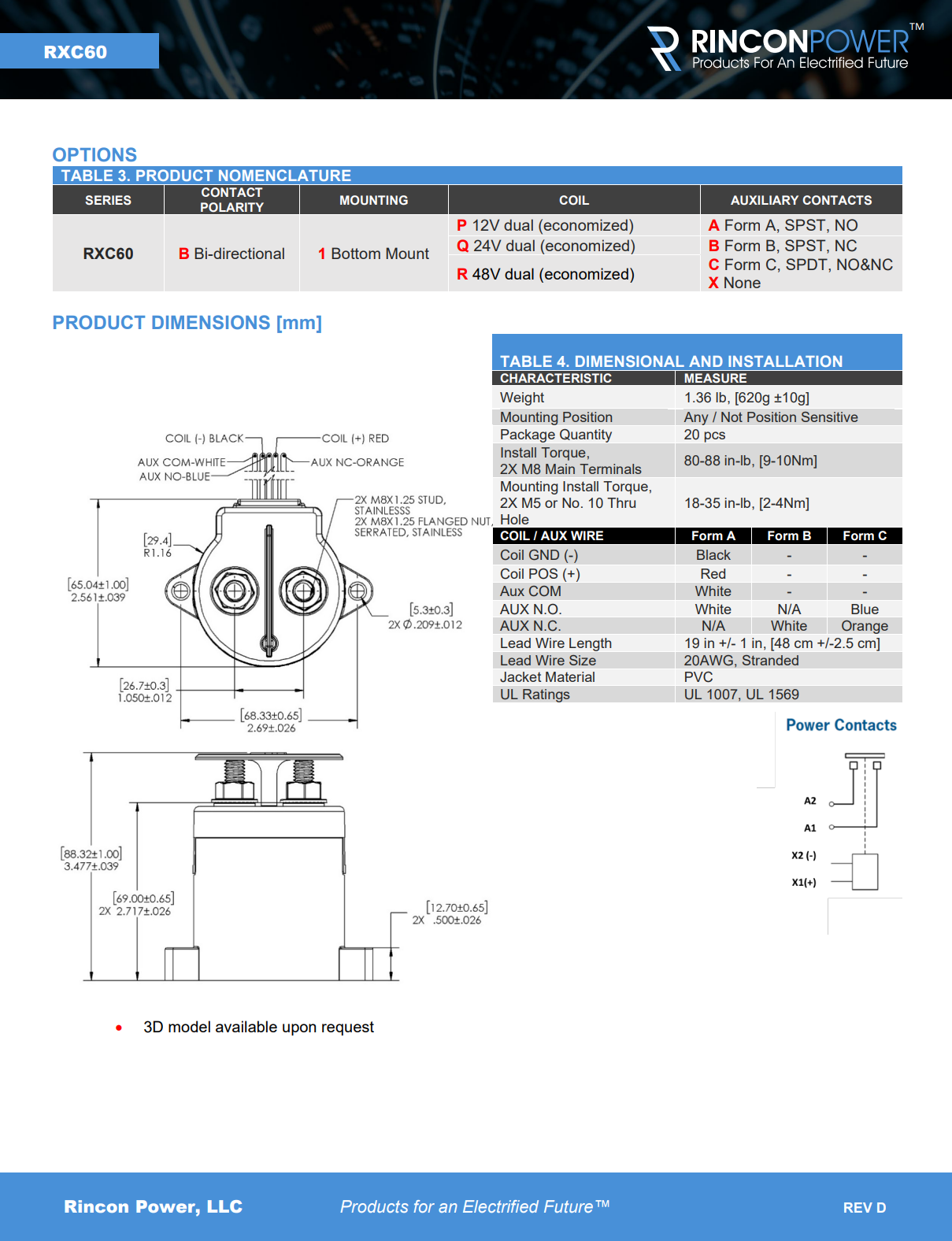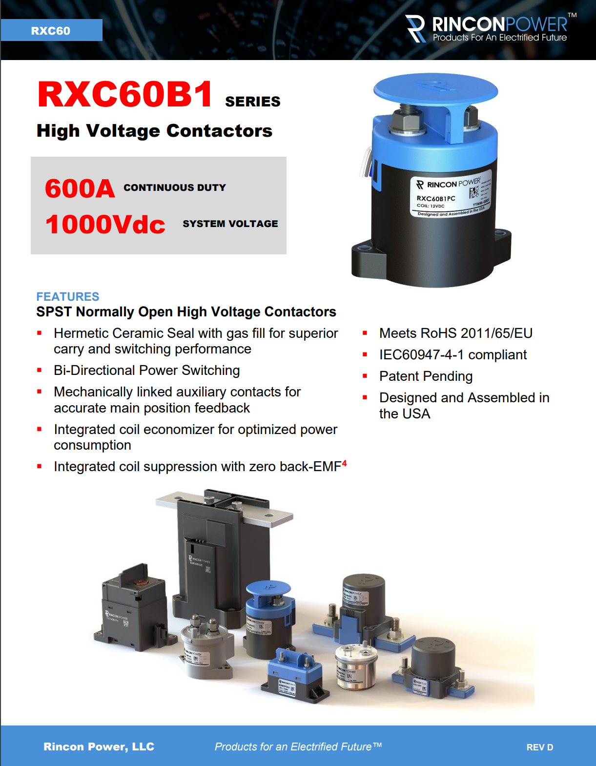 RINCON POWER高压直流接触器,RXC60B1PX,RXC60B1QC,RXC60B1PC,RXC60B1QX