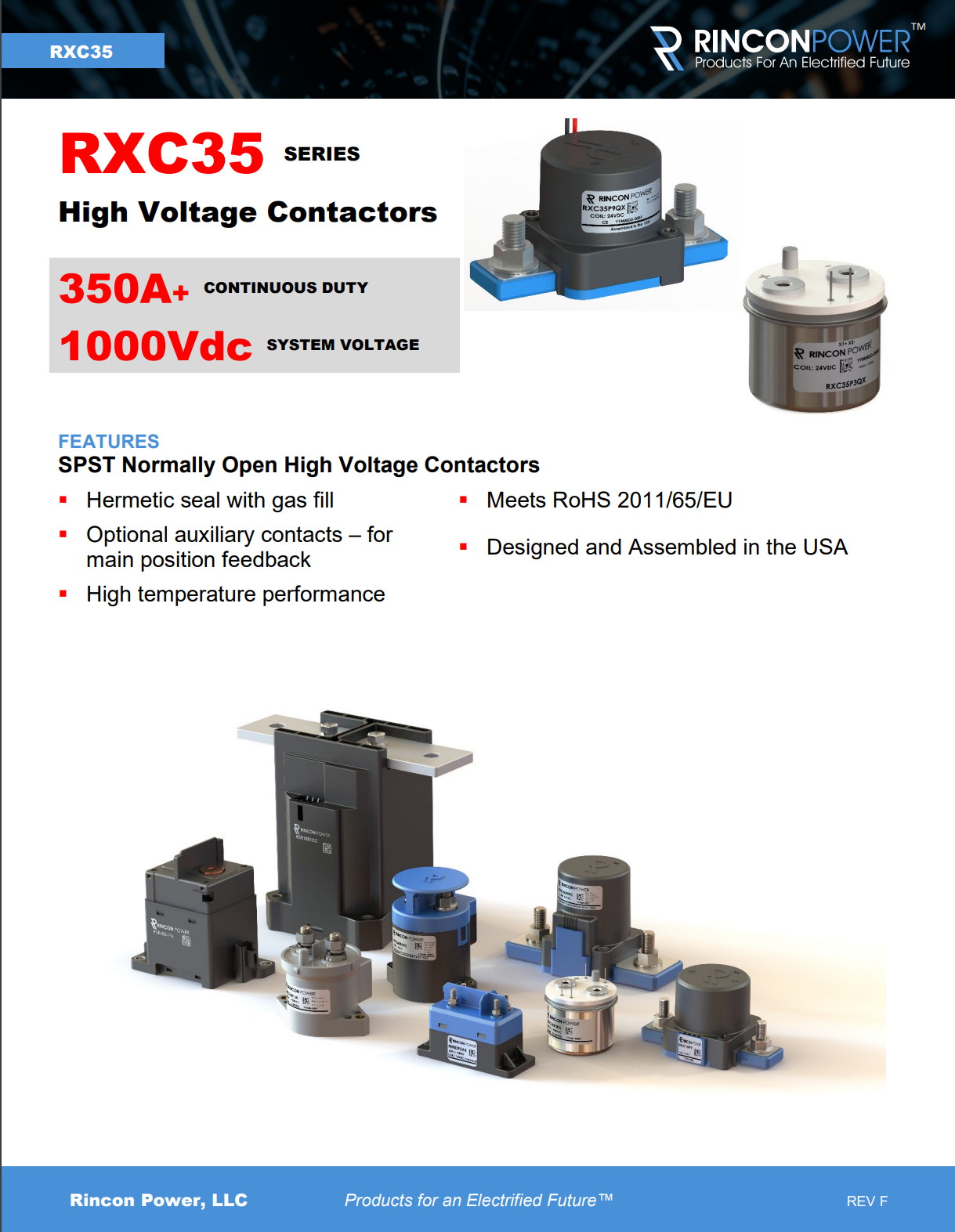 • 远为国际新代理品牌-美国Rincon Power高压电池断开装置 接触器 断路器
