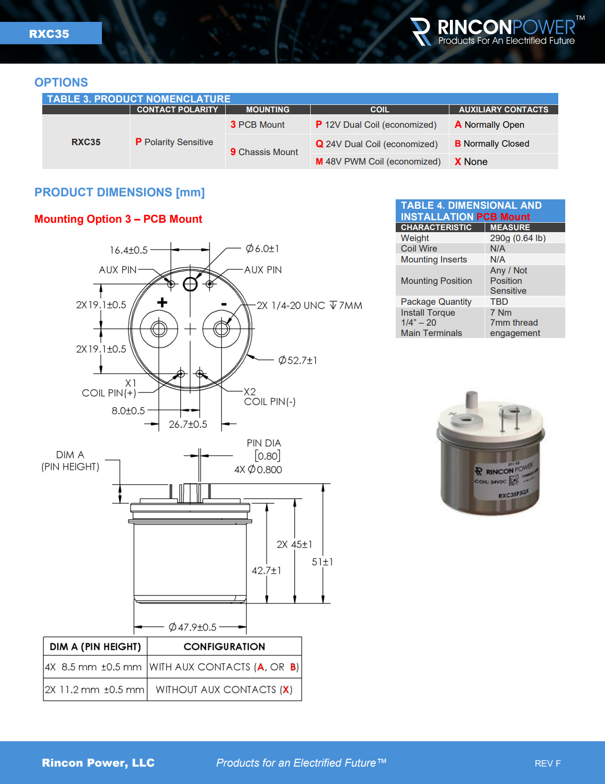 • 代理美国RINCONPOWER高压直流接触器总代理,RXC35P9PA,RXC35P9PB,RXC35P3PB,RXC35P9QB全新原装